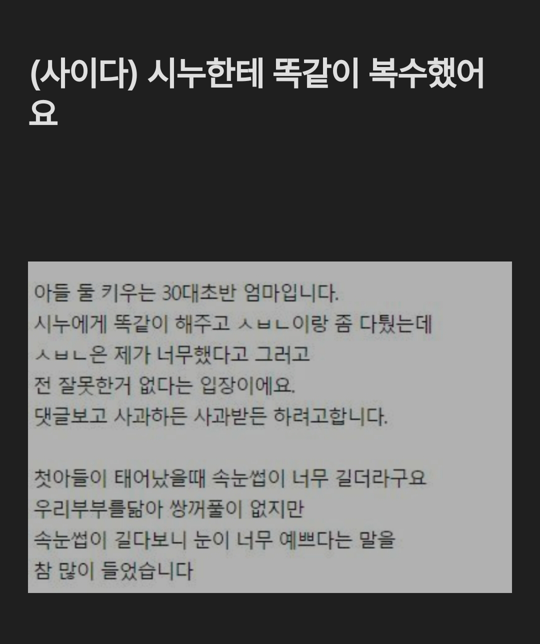(사이다) 시누한테 똑같이 복수했어요..