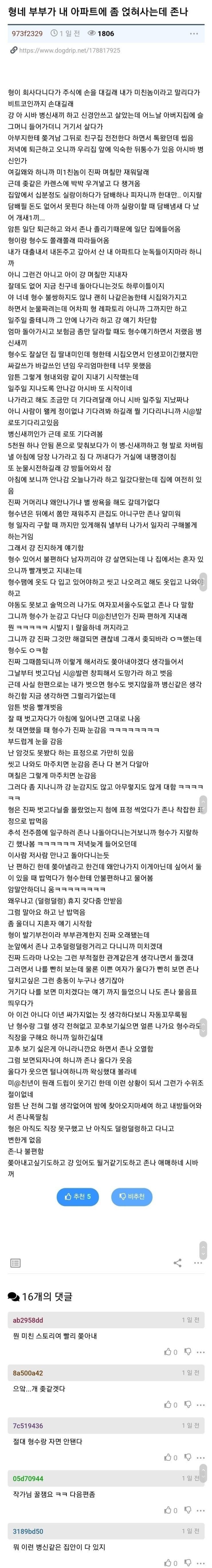 형네 부부가 내 아파트 얹혀사는데, 형수한테 그만